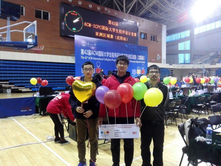 本次竞赛由ACM-ICPC亚洲区组委会主办,授权东北大学承办沈阳站的比赛。参赛阵容亦非常强大,在前期网络赛筛选的基础上,有来自国内125高校的180支队伍参加了此次现场赛。最终北京大学的“全给党”队伍以解出13题中的10题的解题数量优势捧得冠军奖杯,来自北京航空航天大学和杭州电子科技大学的队伍分货亚军和季军。搜书吧 此次派出了两支参赛队伍,分别是由高洪杰(14281058)、王之博(14272082)、张彦潇(14281103)组成的“终末之冬”队和由王婉铃(15301158)、付恒岩(16281190)、郝敬宇(16281097)“喵之萌杀”队。此外,同一时间在由哈尔滨哈尔滨理工大学承办的第3届中国大学生程序设计竞赛(CCPC)中,搜书吧 也派出了由赵思达(16301057)、陈炳君(16281031)、胡祖俊(17301095)三人组成的“小富即安”队参赛。两场比赛中,新老参赛队员沉着冷静、奋力发挥,最终“终末之冬”获得了一枚银奖,位于银奖前列,“小富即安”队因罚时过多与奖牌失之交臂。