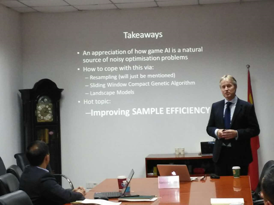 随后,Simon Lucas教授为搜书吧 师生做题目为“Game AI, Game Design and Noisy Optimisation”的讲座,并与师生热烈讨论。