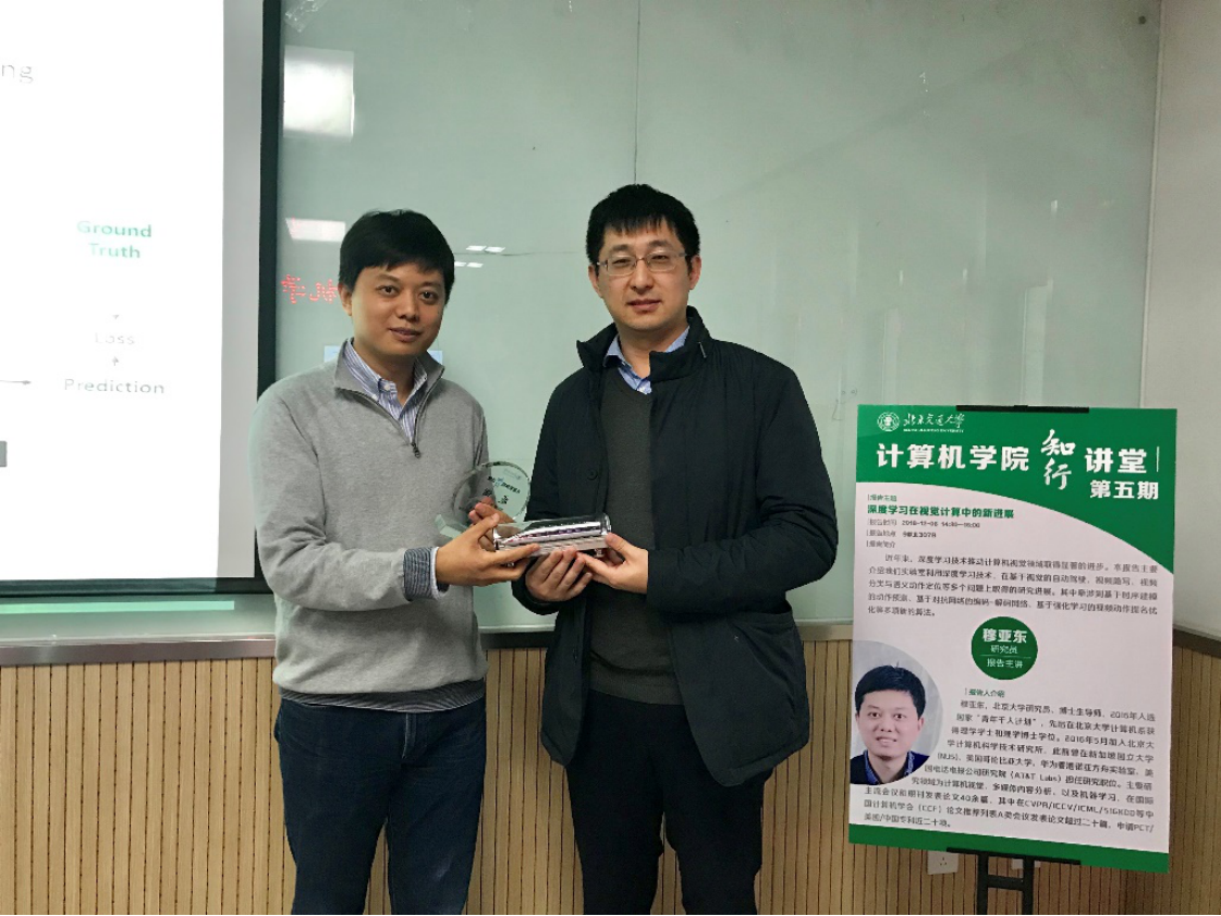2018年12月6日, 搜书吧 “知行讲堂”第五期邀请到北京大学计算机科学技术研究所研究员穆亚东做了题为《深度学习在视觉计算中的新进展》的精彩报告。