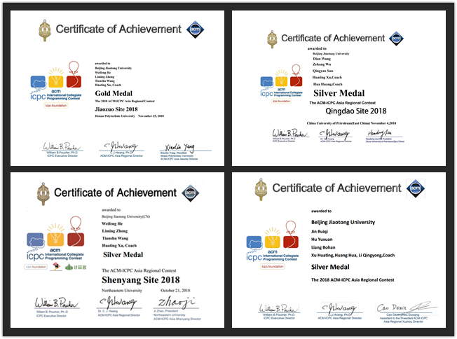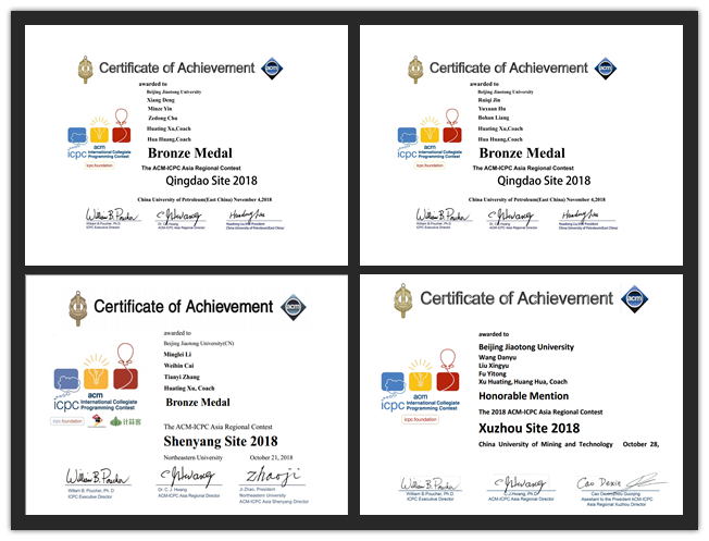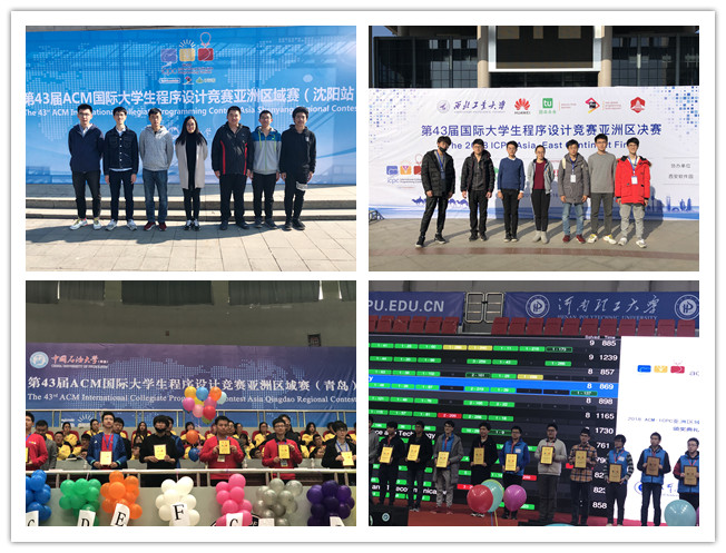 第43届ACM-ICPC(ACM国际大学生程序设计竞赛)亚洲区域赛于2018年10月13日在南京航空航天大学开始,于12月16日在西北工业大学落下帷幕,共设置了八个赛站(南京、沈阳、徐州、青岛、北京、香港、焦作、西安)。经过网络赛的选拔,搜书吧 共获得了12个参赛名额,参与了除南京、香港站外的其他6个赛站的比赛,且均取得了奖牌,共计斩获1枚金牌,4枚银牌,5枚铜牌。