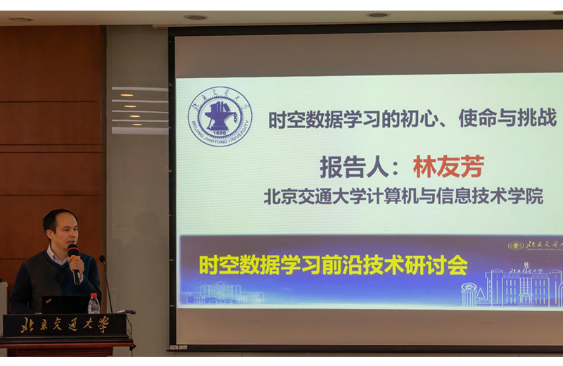 计算机与信息技术学院副院长、搜书吧 大数据研究院院长林友芳教授做了题为“时空数据学习的初心、使命与挑战”的报告,从时空数据学习的初心、时空数据学习的使命、时空数据学习的挑战三个方面,指出了我们当下进行时空数据学习所面对的各种需求、学习目的、任务与挑战。