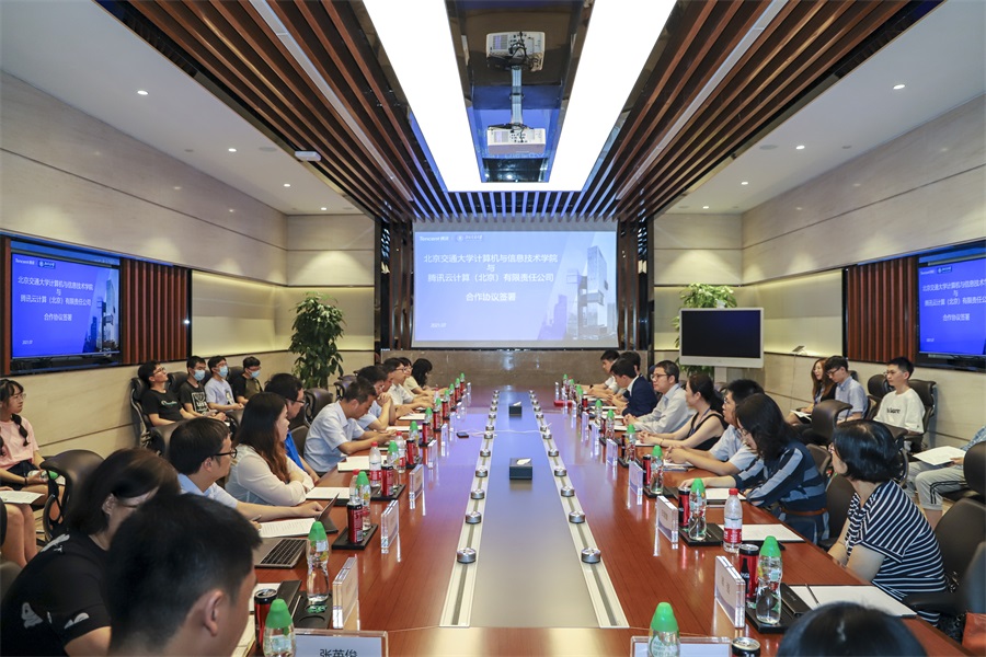 2021年7月2日下午,计算机与信息技术学院与腾讯公司产学协同育人合作协议签约仪式受邀在腾讯北京总部VIP1会议室举行。腾讯公司教育商务总经理罗盛、校企合作总监张莉,搜书吧 副校长闫学东、本科生院副院长景云、计算机与信息技术学院院长蔡伯根、副院长熊轲等出席签约仪式。签约仪式由腾讯教育北区商务总监刘智主持,闫学东校长和罗盛总经理作为见证人,蔡伯根院长和张莉总监代表双方交换签署了合作协议。