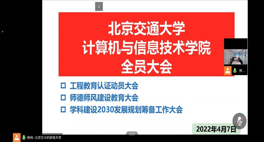 4月7日下午,为深入推进学院专业认证工作,搜书吧 在逸夫楼101会议室召开工程教育专业认证动员大会。会议由副院长熊轲主持,院长蔡伯根、党委副书记段春荣、韦世奎,副院长李浥东、景丽萍出席会议,搜书吧 全体教职工线上参加会议。