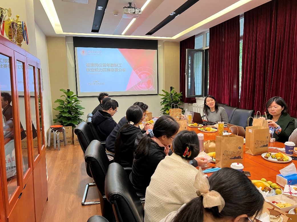 随后,于海妹老师结合参加搜书吧 第一届管理岗位青年教职工职业能力竞赛的心得做了题为《管理岗位青年教职工职业能力竞赛经验分享》的报告,对赛程的要求,自己的准备工作做了详细的介绍,强调了专业知识、公文写作、语言表达等能力对管理岗人员的重要性。她总结,充分的准备、日常的积累、平稳的心态是赢得此次比赛的关键。在座的老师深受启发,纷纷表示此次分享活动受益匪浅,并结合自己岗位工作实际,做了经验分享和问题分析,大家积极讨论,气氛融洽热烈。