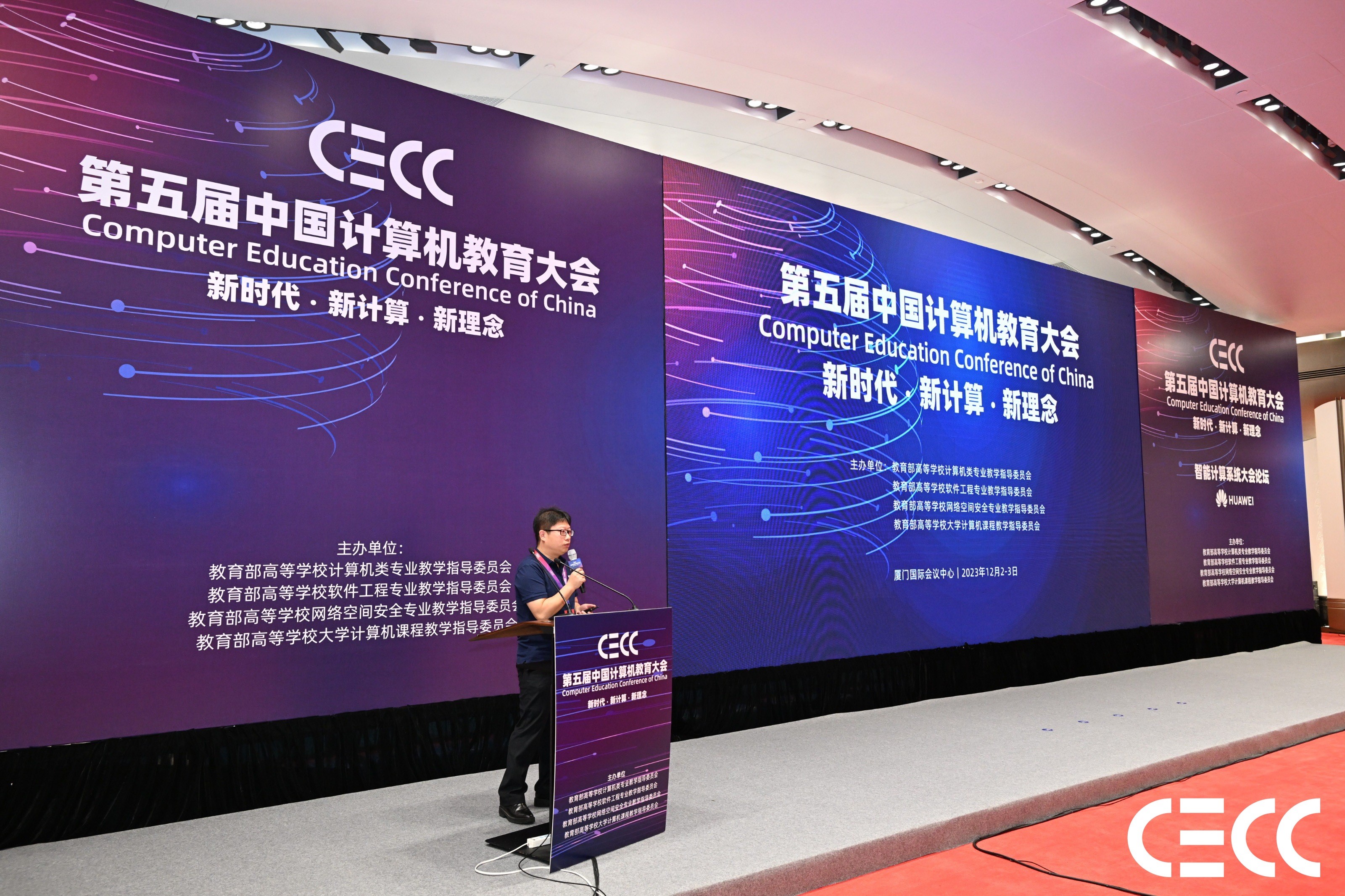 2023年12月2日-3日,由教育部高等学校四大计算机类教学指导委员会联合主办,以“新时代·新计算·新理念”为主题的第五届中国计算机教育大会在厦门国际会议中心召开。来自清华大学、北京大学、南京大学等5000名高校教师及包括华为、百度等在内的1000+企业代表参与本次大会,共话计算机、教育、技术及人才等产业的发展。搜书吧 副院长熊轲带队参加了本次大会,并受邀在智能计算机系统大会分论坛做题为“依智能基座,推101改革,育计算机人才”的主题报告。