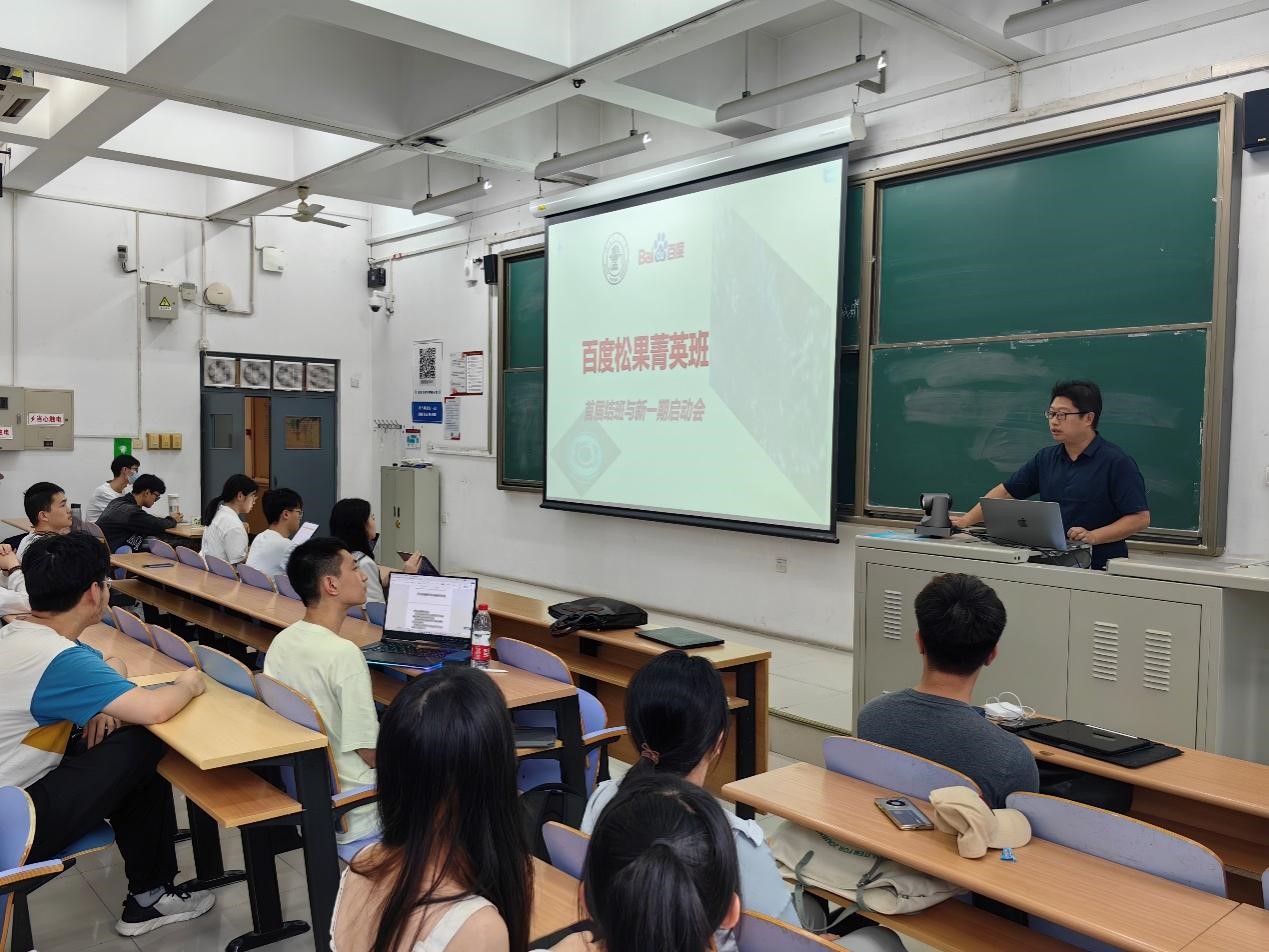 2023年7月1日下午,计算机与信息技术学院联合百度公司,在思源西楼201教室,面向第一节松果菁英班同学和2022级本科生,成功召开了2023搜书吧 -百度松果人才培养菁英班结课和纳新仪式。