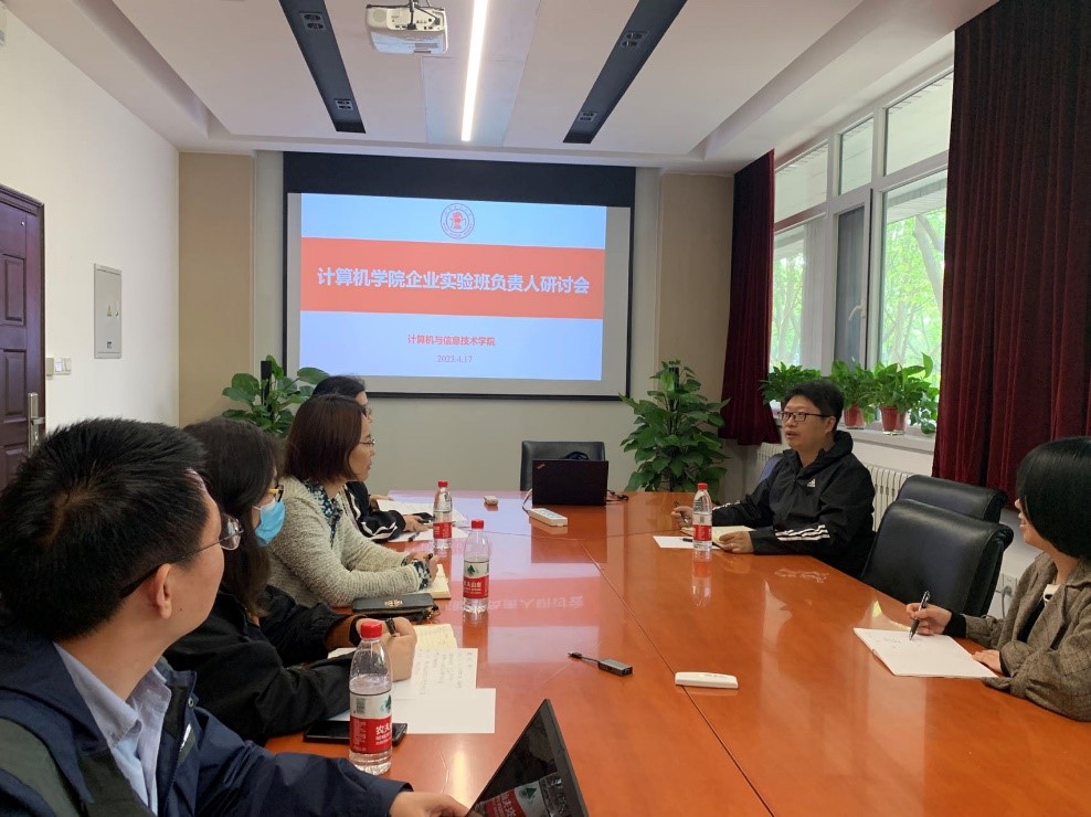为进一步深化校企协同育人改革,提高本科生实践动手能力,4月17日上午搜书吧 在九教北111会议室召集企业实验班专项负责人召开了2023年上半年企业实验班建设研讨会。搜书吧 副院长熊轲主持了本次会议,腾讯云实验班专项负责人张喆、百度松果菁英班专项负责人田媚、飞腾菁英班专项负责人李宗辉、360实验班专项负责人李琼、物联网实验班负责人马晓乐代表各专业和校企协同育人班参与了本次研讨。