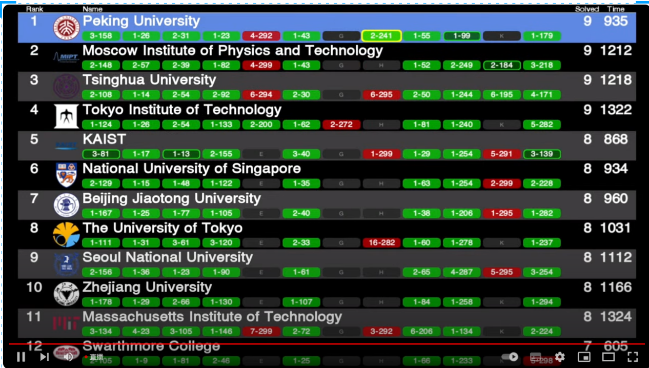 本次ICPC全球总决赛于2024.9.15-9.20期间在哈萨克斯坦首都阿斯塔纳举办,共有141支来自于全球各地的队伍参加。中国大陆共有17所内地高校获得了参赛资格,在12枚奖牌中(4金4银4铜)中,中国队伍表现出色,共获得了4枚奖牌。其中北京大学将参与该项赛事以来的第二个全球总决赛冠军收入囊中,清华大学排名第3获金牌,搜书吧 排名第7获银牌,浙江大学排名第10获铜牌。此次获奖是搜书吧 自2004年参与该项赛事以来取得的最好成绩,也是搜书吧 首次在ICPC全球总决赛上获得奖牌。