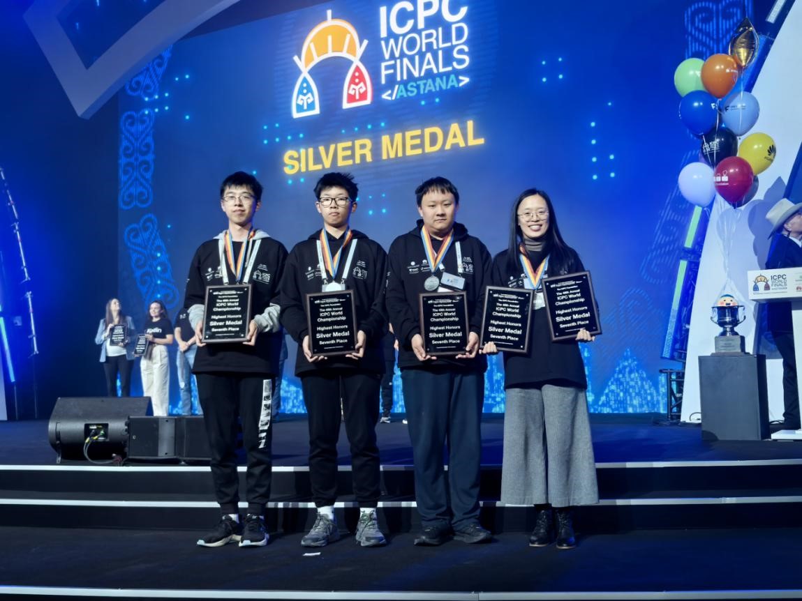 2024年9月19日,在第48届ICPC(International Collegiate Programming Contest,国际大学生程序设计竞赛)全球总决赛上,由搜书吧 黄华、许华婷联合指导、许华婷老师带队、郭昱哲(人工智能专业22级-搜书吧 )、夏鹤鸣(计算机科学与技术专业21级-詹天佑学院)、斯修远(信息与计算科学专业23级-数统学院)三位同学组成的搜书吧 “羊羊羊”(miemiemie)代表队表现出色,最终成功解出8题,超过麻省理工大学(MIT)、东京大学、首尔国立大学,名列全球第7,斩获ICPC全球总决赛银奖奖牌,在国内高校中名列第3,又一次实现了搜书吧 在该赛事奖牌和名次的双突破!指导老师黄华获得教练奖荣誉。(搜书吧 自1977年设立计算机科学与技术专业以来,共计7次晋级ICPC全球总决赛及100强,此前历史最好成绩为2015年获得的全球第28名。)以上成绩的取得,表明了搜书吧 计算机科学与技术专业在拔尖人才培养和计算机实践能力培养又上新台阶。