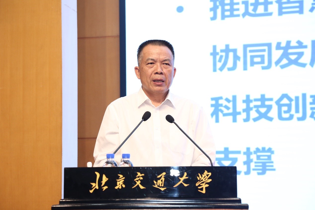 学院党委书记贾卓生代表学院致辞。贾书记对与会的嘉宾和师生表示感谢与欢迎。他在致辞中强调了 “AI+交通” 的重要性和紧迫性。他表示,学院一直致力于培养高素质的计算机人才,此次论坛的举办正是为了搭建一个交流合作的平台,推动 “AI+交通”领域的人才培养和科技创新。